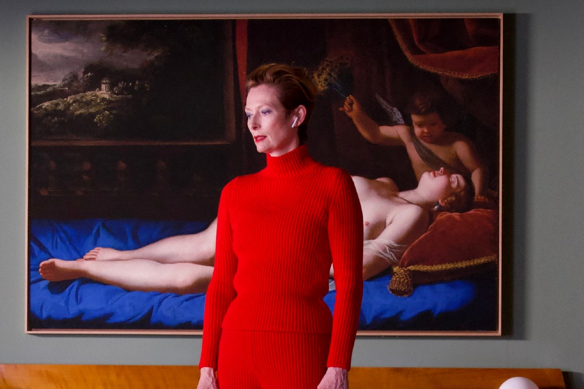 A abordagem de Tilda Swinton para essa personagem não é extrema e nem marcada por gritos ou grandiosos gestos dramáticos do início ao fim. Amparado por uma forma que dialoga com o teatro, o diretor coloca a atriz em movimentos bastante limitados nesse lugar que é assumidamente um cenário, criando uma oposição ainda mais interessante com os momentos que precisam ser mais intensos, como a cena do machado ou a catártica cena final. Mesmo nesses casos, a perturbação da mulher é estranhamente contida, pontuada por uma ou outra elevação de voz, um gesto mais amplo ou uma afirmação mais dura nas palavras que profere para o seu irritante parceiro ao telefone.
