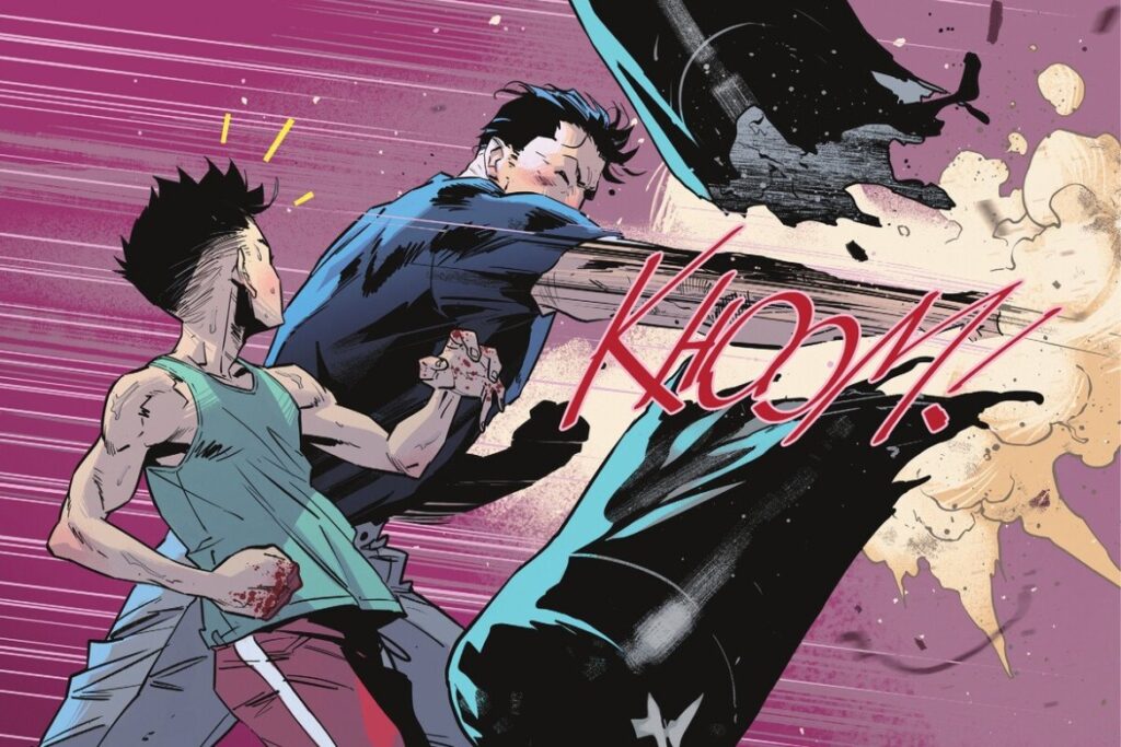 Nesse sentido, o arco envolvendo Robin (Tim Drake) é central para o volume. A edição em que Tim é jogado algemado em um camburão com criminosos violentos é menos sobre ação e mais sobre o relacionamento de Tim e Bruce, bem como do tema recorrente de brutalidade policial. O episódio tensiona a relação entre Batman, GCPD e opinião pública, reforçando a abordagem do texto. Inclusive, gosto da humanização que a equipe criativa traz aos personagens, deixando-os mais próximos de uma trama centrada nas ruas e não tanto com a grandiloquência que estamos infelizmente ficando acostumados com o Morcegão.