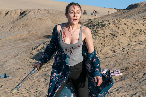 Em razão dessa parada inesperada – e convenientemente perto da costa – Daniel, Alicia, Nick e Chris (porque faz sentido mandar TODOS os seus filhos para lugar incerto e potencialmente infestado de zumbis) saem para investigar os destroços do voo 462, que eles localizam na praia. É lá que a melhor parte do episódio ocorre, com uma construção inteligente e até mesmo solene de um suspense inquietante que faz uso dos clichês do gênero para trabalhar nossos medos. Assim, temos a separação do grupo, com Chris indo razoavelmente longe para verificar parte da fuselagem ainda razoavelmente intacta e encontrando não só mortos-vivos, como também um humano vivo, mas muito ferido, o que o obriga a aplicar o golpe (ou os golpes, em sequência destruidora) de misericórdia, algo que obviamente o faz lembrar do que Travis fez com sua mãe e, se o garoto for minimamente inteligente, entender as circunstâncias. Há também Nick, daquele seu jeito meio perdido, observando um zumbi semi-enterrado na areia e caindo “de maduro” ao lado dele, algo bem trabalhado pela câmera intrusiva que nos coloca dentro da situação.