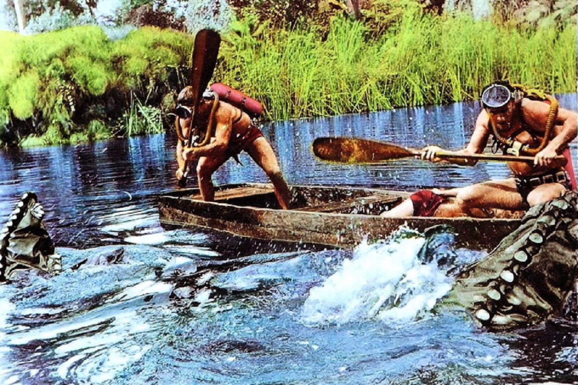 Um oferecimento, Roger Corman! O Ataque das Sanguessugas Gigantes, clássico trash lançado em 1959, é um dos tantos filmes do segmento horror ecológico produzidos sob o olhar do mestre do bizarro, na função de produtor quando não assumia o posto de cineasta em histórias bastante excêntrica sobre humanos incautos diante da ameaça de animais assassinos, modificados geneticamente nalgumas destas mirabolantes narrativas. Com pouco mais de 60 minutos, a produção dirigida por Bernard L. Kowalski e escrita por Leo Gordon traz para o público o que a publicidade em torno do produto chamou de “horror rastejante”, perpetrado por sanguessugas gigantescas, oriundas das escuras cavernas submersas, criaturas aquáticas esfomeadas por vítimas humanas, em mutação graças aos efeitos da radiação, tema catalisador de paranoias no cinema ocidental posterior ao advento da Segunda Grande Guerra Mundial. Assim, com direção de fotografia cheia de momentos aquáticos, assinada por John M. Nickloaus e trilha sonora esquizofrênica, composta por Alexander Laszlo, a produção entendia e diverte ao mesmo tempo, um paradoxo complexo de explicar, tal como a própria existência deste filme cheio de momentos tomados pelo humor involuntário e por altas doses de falta de bom senso dos realizadores.