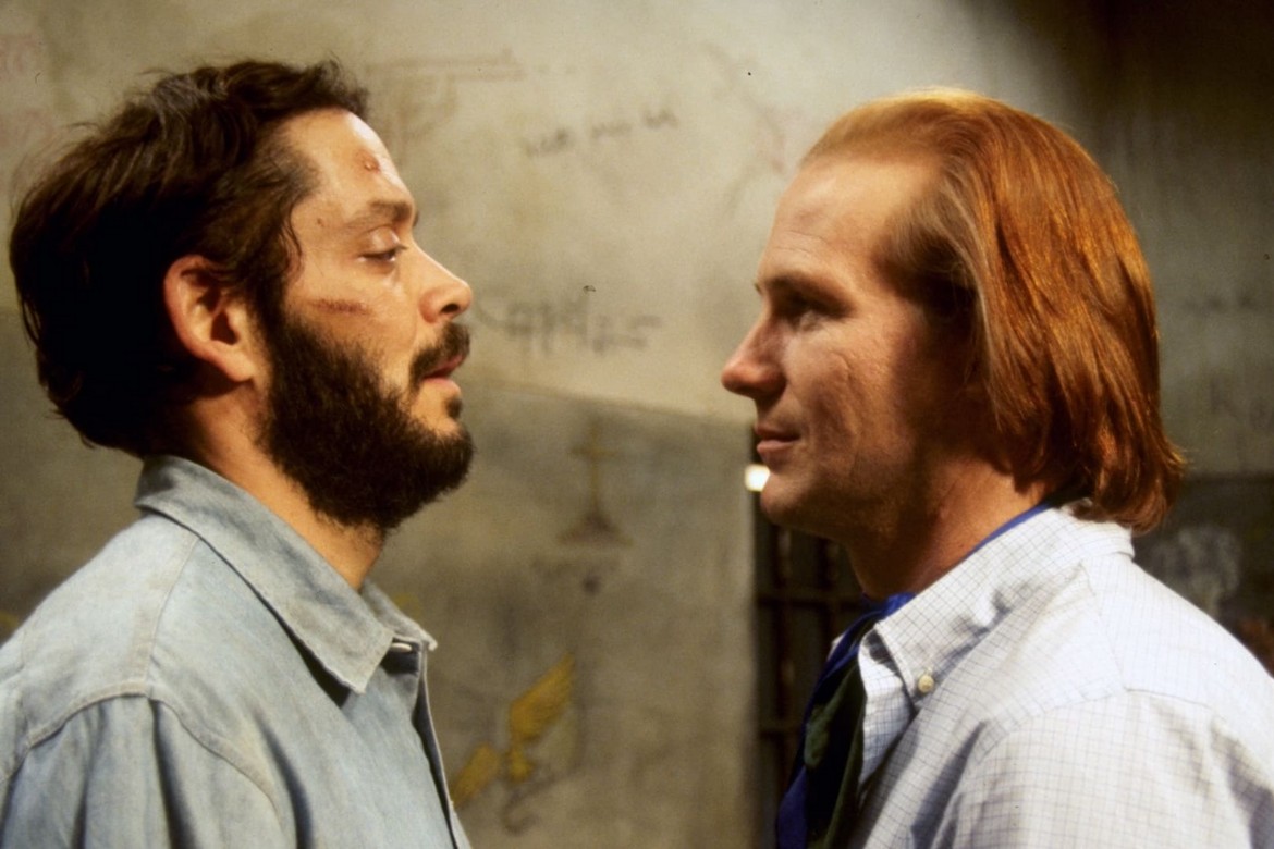 A primeira adaptação do romance O Beijo da Mulher Aranha, do argentino Manuel Puig, é bastante celebrada como uma importante peça no cinema e por sua alegoria política centrada no período da ditadura. Dirigido por Hector Babenco, o filme narrava a história de dois prisioneiros em regime autoritário: Molina (William Hurt), um homossexual fissurado em contos e melodramas e preso por ter molestado um jovem e Valetin (Raul Julia), um político revolucionário. Se passando em um país que nunca é citado, acompanhamos essas duas figuras opostas quase que inteiramente dentro da cela que dividem. Nesse ponto, vale destacar como somos apresentados a esse espaço: enquanto Molina compartilha uma das muitas histórias dos filmes que assistia — a descrição luxo e da vista para Torre Eiffel — a câmera de Babenco passeia sem pressa pelas paredes acinzentadas do ambiente escuro, barras enferrujadas e pinturas que esboçam a ideia de liberdade, até chegar a uma penteadeira improvisada e sem espelho ao tempo que entendemos que as imagens mostram uma realidade distante da narração do protagonista.