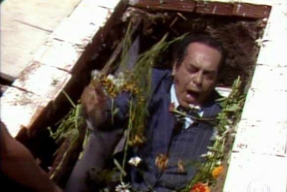 Mas, como é sabido de Vossas Senhoricências, o sucesso foi tanto que, nada menos do que sete anos depois do fim de O Bem-Amado, depois de uma longa confabulância sigilenta nos bastidores da Globo, a novela foi revivida na forma de série televisiva (ou seriado, como era a nomenclatura da época) que foi ainda mais longeva, com nada menos do que 220 episódios transmitidos ao longo de cinco anos. E eu disse “revivida” propositalmente, pois, ao final da novela, o funéreo cemitério é realmente inaugurado, mas, em razão justamente da morte do prefeito pelas mãos de Zeca Diabo, ironicamente contratado pelo prefeito para apenasmente suicidar alguém. Ou seja, o protagonista e grande atração da novela estava morto e continuar a narrativa seria um desafio. Mas claro que não foi e a solução foi simples e direta: tudo não passou de um plano mirabolante e Odorico estava vivinho da silva, com o início do mais do que descritivo A Ressurreição de Odorico Paraguaçu mostrando o prefeito saindo de sua cova e retomando seu ofício como se nada tivesse acontecido.