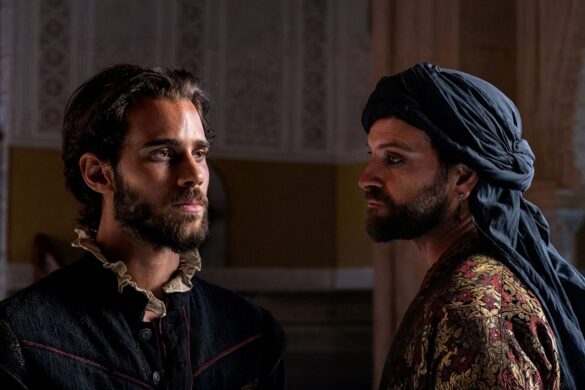 A força dramática da obra reside no embate magnético entre seus protagonistas: Julio Peña, no papel de Miguel de Cervantes, entrega um desempenho dramático que equilibra com maestria fragilidade, inteligência e uma resistência inabalável, enquanto, do lado oposto, Alessandro Borghi dá vida a um Hasán Bajá que exala sensualidade, cinismo e uma arrogante consciência de seu poder. Longe de ser um antagonista convencional, o líder local interpretado por Borghi torna-se a figura-chave na trajetória de Cervantes, representando uma autoridade exercida por meio da negociação, da curiosidade intelectual e do controle simbólico, o que estabelece uma relação tensa, imprevisível e carregada de eletricidade com seu prisioneiro. Assim, sob a direção de Alejandro Amenábar, que com seu talento habitual aposta no poder do silêncio, na densidade do diálogo e no conflito psicológico puro, o filme foge do óbvio ao sustentar uma ambientação contida e um ritmo controlado. Essa ênfase absoluta na construção dos personagens transforma a experiência em algo profundamente reflexivo, consolidando a trama não apenas como um entretenimento de alto nível, mas como uma eficiente e necessária aula de Literatura e História.