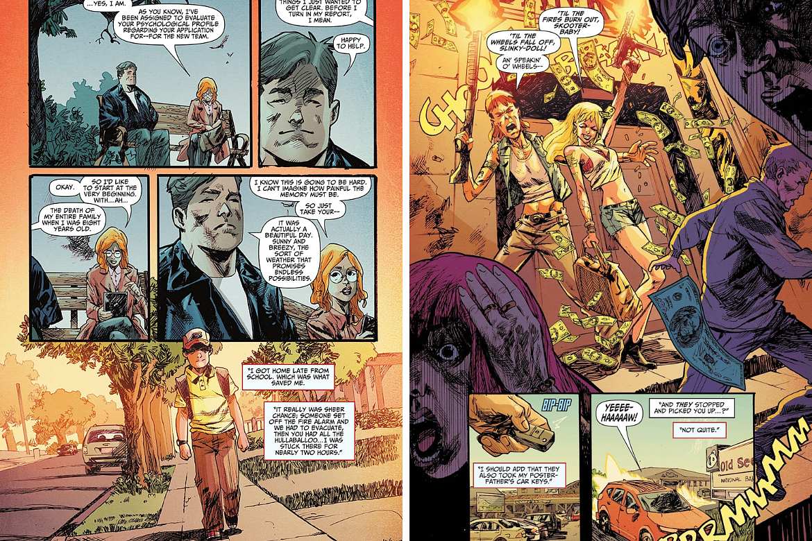 A estrutura é clássica. As sequências do cemitério, no presente, não só emolduram os flashbacks, como também os interrompem de tempos em tempos, vagarosamente também alterando o status quo estabelecido no início, com os retornos ao passado sem fundamentalmente cronológicos, começando com o assassinato dos irmãos de Smith seguido dos suicídios de sua mãe e padrasto, em um momento gráfico e chocante bem no estilo Ennis de escrever, e seguindo com o garoto algum tempo depois da tragédia sendo adotado como um mascote de uma dupla de ladrões e assassinos bem no estilo “Mickey e Mallory”, de Assassinos por Natureza e chegando à sua vida no exércitos, em missões especiais. Claro que a cronologia ganha “sabores” mais para o final, comandando uma pequena reviravolta – ou releitura – do que vimos acontecer poucas páginas antes, mas Ennis é elegante no que faz o tempo todo, mesmo considerando o grau de violência de seu one-shot que, por isso, ganhou o selo DC Black Label.