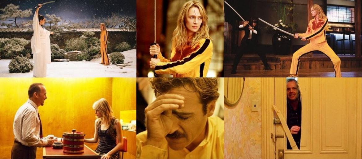 Presença amarela nos frames de vingança e calor de Kill Bill, na loucura dos personagens de Birdman e O Iluminado. No centro, Joaquin Phoenix e sua insegurança no drama Ela…