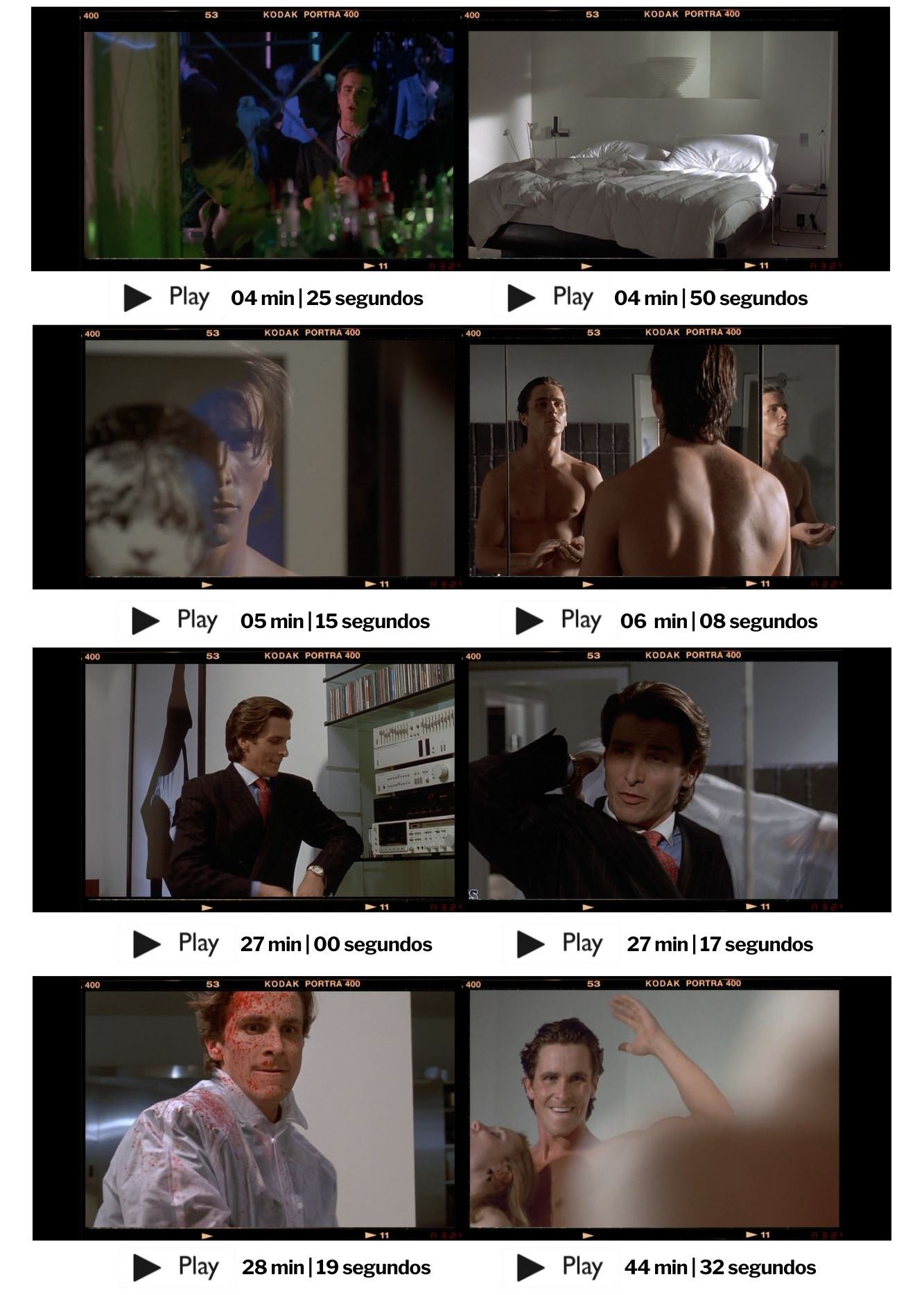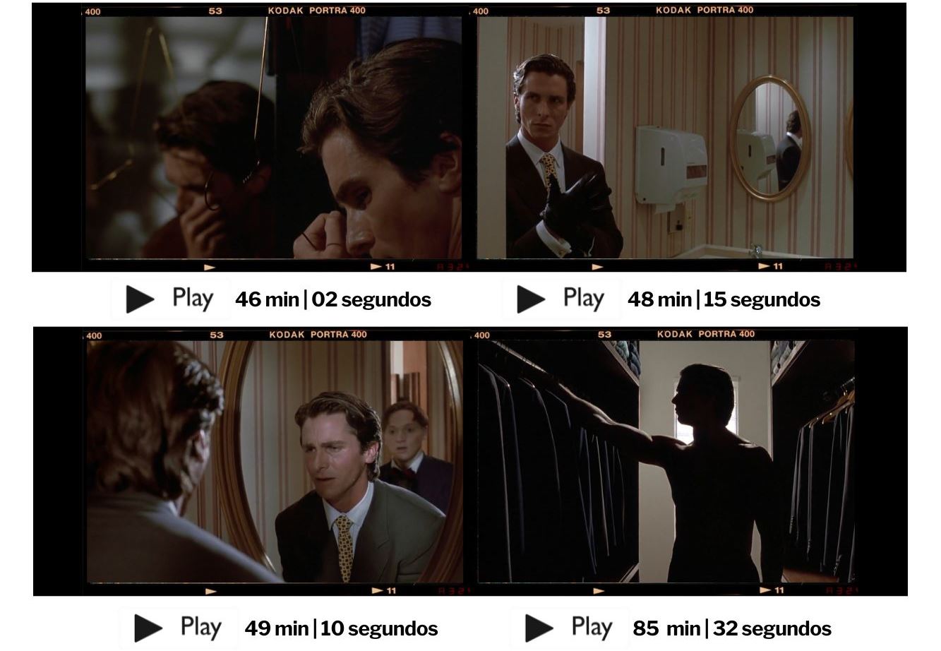 Quando Bateman é contemplado diante de espelhos ao longo dos 104 minutos do filme, ele não está apenas diante de um espaço físico, mas em um campo de batalha psicológico. A reflexão que o espelho proporciona serve como um lembrete constante de quem ele é ou do que se tornou, intensificando a luta interna e, muitas vezes, a ambivalência moral do personagem. Isso incentiva o espectador a considerar as implicações éticas e emocionais do que está se desenrolando na tela. A utilização de espelhos, como nós podemos observar em alguns quadros destacados por aqui, auxilia na estética do filme, criando imagens visualmente impressionantes que permanecem na memória do espectador. Cineastas como Alfred Hitchcock utilizaram espelhos não apenas para simbolizar temas complexos, mas também para criar cenas visualmente cativantes que elevam a narrativa cinematográfica. A leve dissonância entre o que o espelho reflete e a realidade pode criar uma estranha beleza, intensificando a experiência sensorial do espectador. Mary Harron e sua equipe técnica, que traz o brilhantismo do design de produção de Gideon Ponte, seguem esse caminho. Em linhas gerais, caro leitor, os espelhos na cenografia de um filme são mais do que meros itens físicos; eles são instrumentos essenciais que refletem e simbolizam a complexidade das narrativas, personagens e situações. Por meio da sua utilização, cineastas podem explorar questões profundas de identidade, moralidade e a natureza da realidade. O impacto visual e emocional que os espelhos proporcionam contribui não apenas para a estética do filme, mas também para sua profundidade narrativa, como acontece em Psicopata Americano.